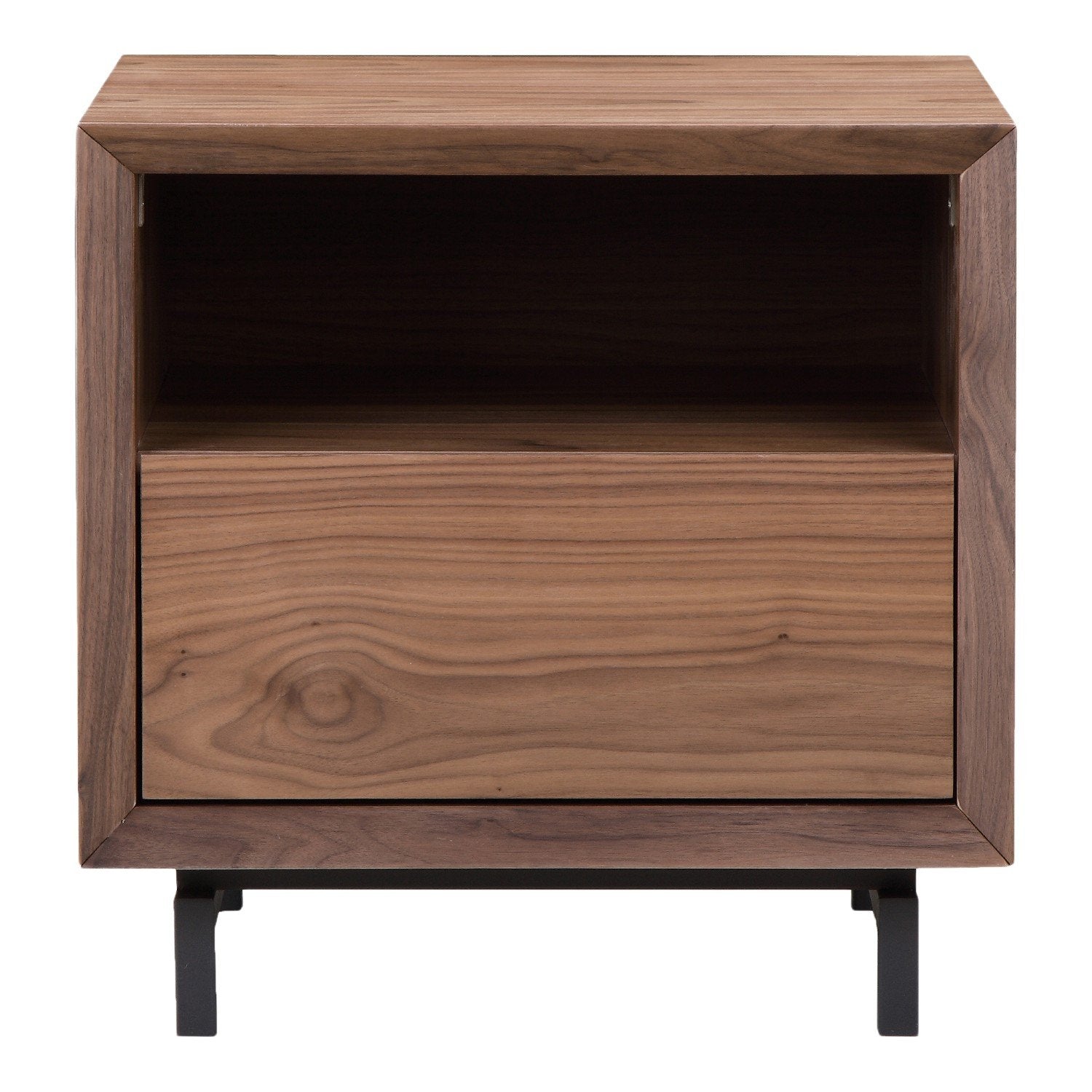 Regular price $765.00The beauty of walnut wood shines in this handy little side table. Perfect for beside the sofa or bed, there is a combination of open and closed storage to help keep your home in order. Provides both hidden and exposed storage space. Contemporary Modern Style. Part of Persela collection. Dimensions: 20"W 18"D 20"H. Product weight: 44lbs. Color: Brown. Assembly is not required. Made in China. We are offering 1 year limited warranty (covered for any manufacturer's defect). Construction: Walnut Wood Veneer, MDF. Frame: Metal Legs. We understand how important your home is and how decorating your kitchen, dining room or bedrooms with classy, contemporary furnishings can help make it a place that reflects who you are. We believe in the power modern furniture has in creating not just a home but YOUR home. We believe in feeling good about our home's environment, and we think you do too.
