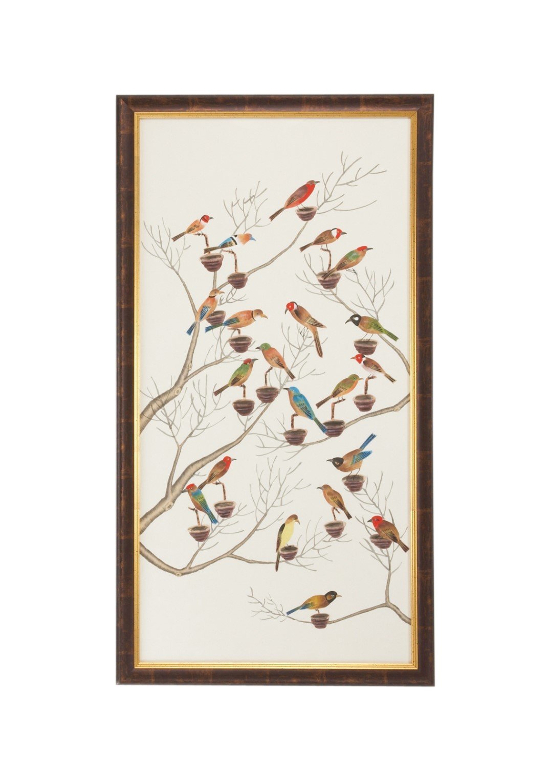 Water Color on Silk Antique Gold and Brown Frame .