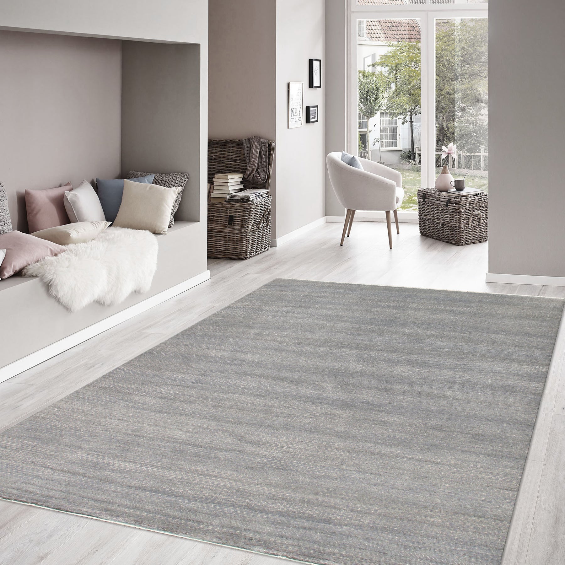 Transitional Hand-Knotted Area Rug.
